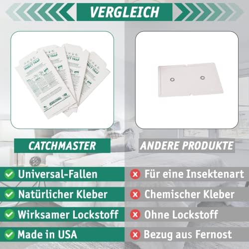 Unsere Produkte sind in den USA hergestellt und erfreuen sich sowohl bei professionellen Anwendern als auch bei Heimwerkern großer Beliebtheit. Vertrauen Sie auf die bewährte Qualität von Catchmaster, um Silberfischchen effektiv und zuverlässig zu bekämpfen.