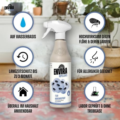 Das Envira Flohspray bietet einen zuverlässigen Schutz vor Flöhen im Haushalt und ist ideal für die Anwendung auf Teppichen, Polstermöbeln, Haustierbetten und anderen betroffenen Bereichen. Mit seiner speziellen Formel sorgt es für eine gründliche und effektive Bekämpfung von Flohinfestationen.