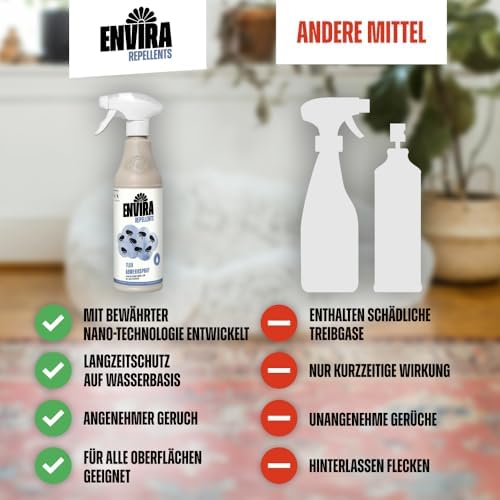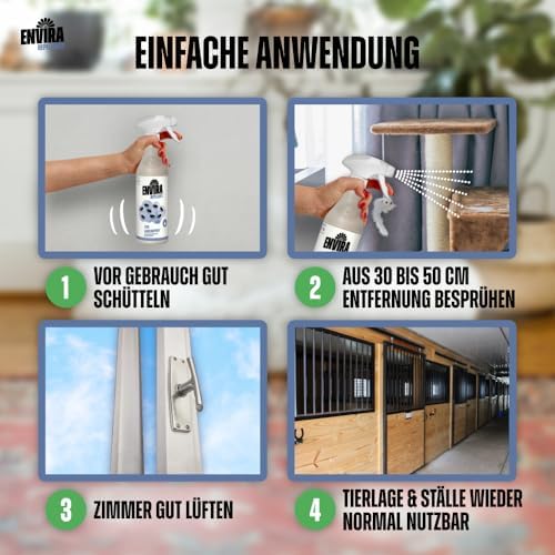 Das Envira Flohspray ist für die Anwendung auf verschiedenen Oberflächen geeignet. Es eignet sich hervorragend für Textilien, Böden und Möbel sowie für Bereiche, in denen Ihre Haustiere schlafen oder sich aufhalten. Dies gewährleistet umfassenden Schutz in jedem Raum und sorgt dafür, dass Ihr Zuhause frei von Flöhen bleibt.