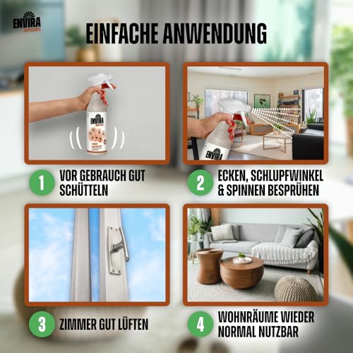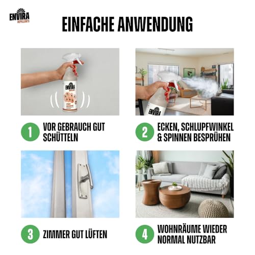 Mit dem Envira Spinnen Abwehrspray entscheiden Sie sich nicht nur für ein effektives Produkt, sondern auch für eine einfache und benutzerfreundliche Anwendung, die Ihnen über Monate hinweg Sicherheit bietet. Schaffen Sie sich ein spinnenfreies Zuhause, in dem Sie sich rundum wohlfühlen können!