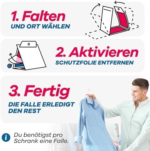 Schütze deine wertvollen Kleidungsstücke vor kostspieligen Schäden durch Mottenbefall. Mit unseren anwenderfreundlichen Kleidermottenfallen bleibst du langfristig auf der sicheren Seite und sparst Geld.