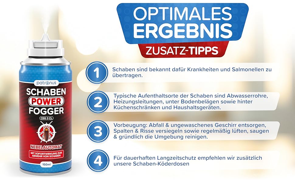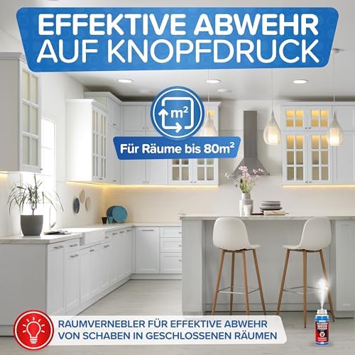 Unser abweisender Insektennebel hinterlässt keine Flecken. Nach der richtigen Anwendung können die behandelten Flächen nach wenigen Stunden wieder betreten und genutzt werden. Dies bedeutet, dass Sie nicht nur gegen Kakerlaken kämpfen, sondern auch sicherstellen, dass Ihre Wohnung sauber und einladend bleibt.