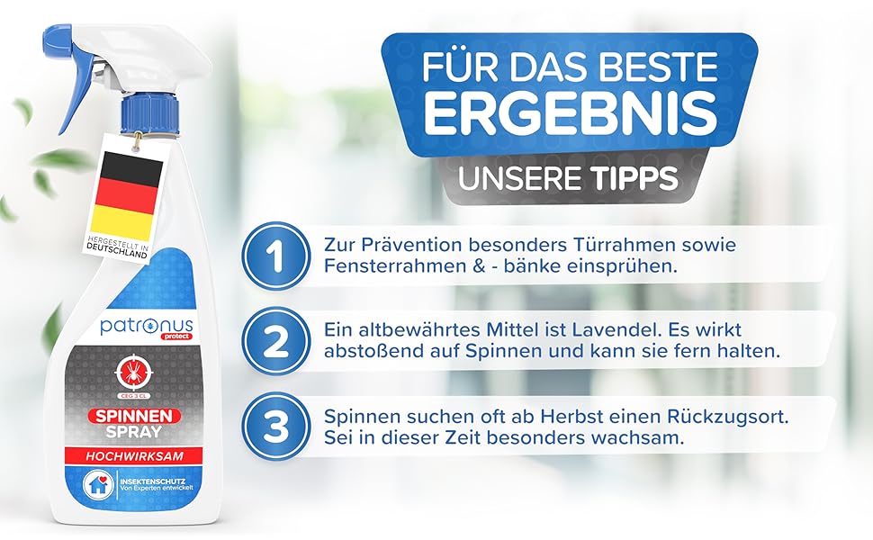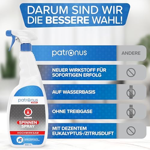 Setzen Sie auf den zuverlässigen Schutz von Patronus und genießen Sie ein spinnenfreies Wohnen. Mit unserem Anti-Spinnenspray entscheiden Sie sich für ein Produkt, das nicht nur effektiv ist, sondern auch höchsten Ansprüchen an Qualität und Sicherheit entspricht. Schützen Sie Ihr Zuhause jetzt – für mehr Lebensqualität!