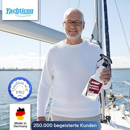 Der Yachticon Spinnenabweis ist speziell entwickelt, um Spinnen und andere Insekten auf natürliche Weise fernzuhalten. Diese innovative Formel ist vielseitig einsetzbar und eignet sich perfekt für Boote, Wohnmobile, Patios, Hausfassaden, Keller, Garagen und Wohnräume. Mit einem angenehmen, dezenten Duft ist das Produkt sowohl für Innen- als auch Außenbereiche ideal geeignet.